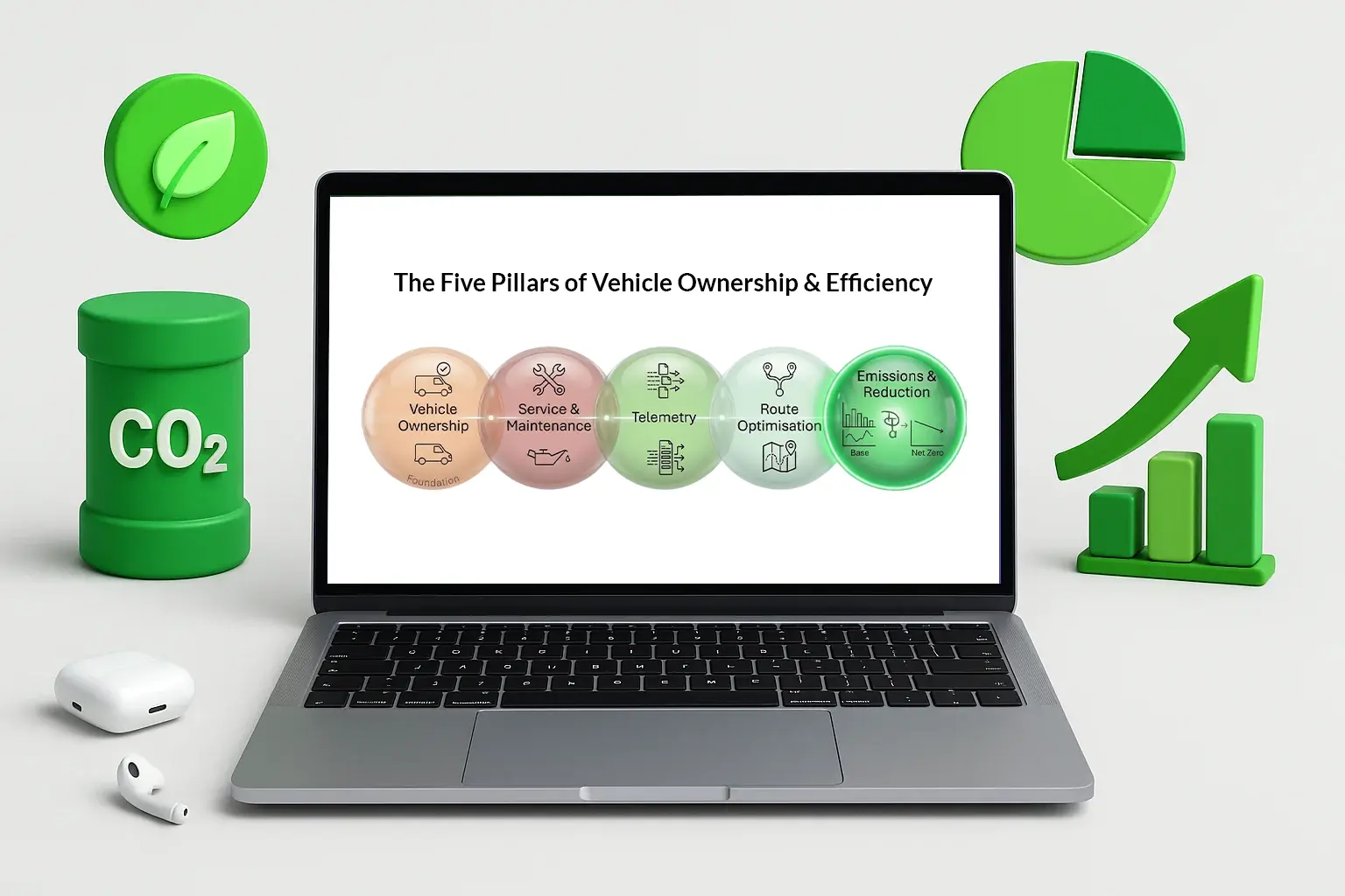 Our strategic framework is built around the five areas that have the greatest influence on fleet performance, operating cost, and emissions outcomes. By improving visibility across each stage, we help customers build a more efficient, sustainable, and compliant transport operation.